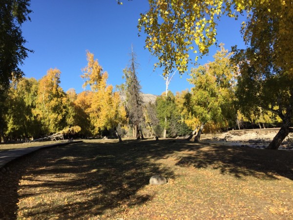 昨下午进入可可托海大景区,看了可可苏里、三号矿坑,今天就玩可可托海主景区,包括大峡谷。可可托海,位于富蕴县东北48公里,是中国第二冷极(第一是漠河)。可可托海,哈萨克语是绿色丛林的意思,蒙古语是蓝色河湾的意思。我不再啰嗦地详细描述了,请百度“可可托海"。前几天,这里人山人海,因为中秋佳节,又因为喀纳斯禾木方向大雪封山,大家蜂拥而至,高峰时排队4个多小时才进入景区,进入景区时已经疲惫不堪。今天,人不多,天气好。还是用游览时间表达景区漂亮程度吧,听说半天即可游览完景区,我们用了整整十个小时,真叫早出晚归、恋恋不舍。