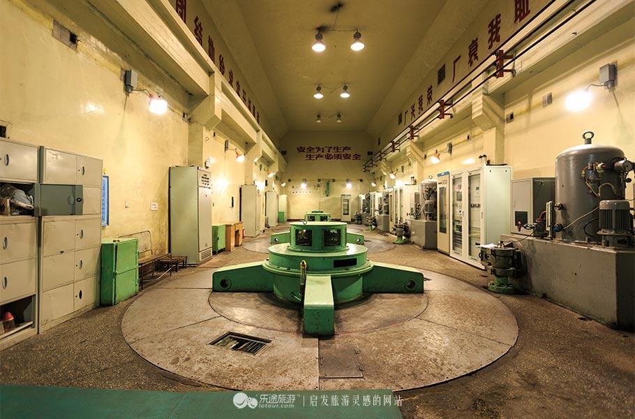 据讲解员介绍,修建地下水电站时,困难重重,每一步都是生死攸关。水电站的电线要架在山上,可是水电站周围山势陡峭,要想顺利的铺设输电线路,就要把电线、电线杆和电线杆水泥基座先运送到山上去。最后,工人们决定用用肩膀扛。把电线扛上山还不算困难,难的是将电线杆和水泥基座抬到山上去。尤其是水泥基座,工人们称之为“牛腿”,一个“牛腿”就有5米多长,重量更是不轻。为保证工程进度,要求一个“牛腿”必须在一天内运到山上。十几个工人一起往山上抬,后面有人推,前面有人抬,工人们走3米4米就要停下休息,但是没有人叫苦叫累……尤其是在山顶悬崖工作的工人,稍不小心脚滑了就会摔下来。