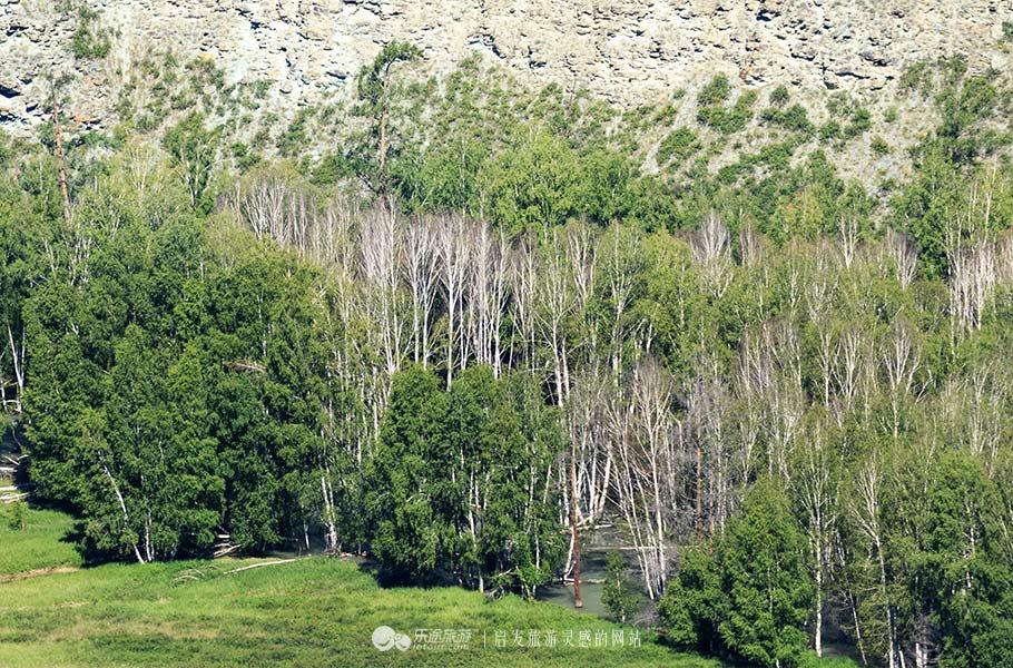 静静的白桦树,好动的阿克哈巴河,一静一动,相得益彰。我的眼眸连同我的思绪,竟然也跟着这奶油绿的河水顺流而去,不知她将要把我带向哪里去!